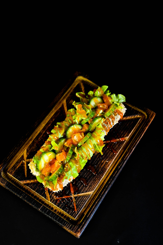 Рол з обпаленим лососем та пікантним соусом
